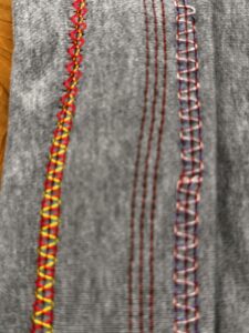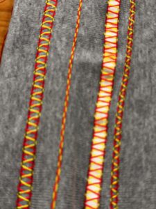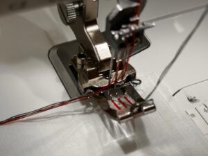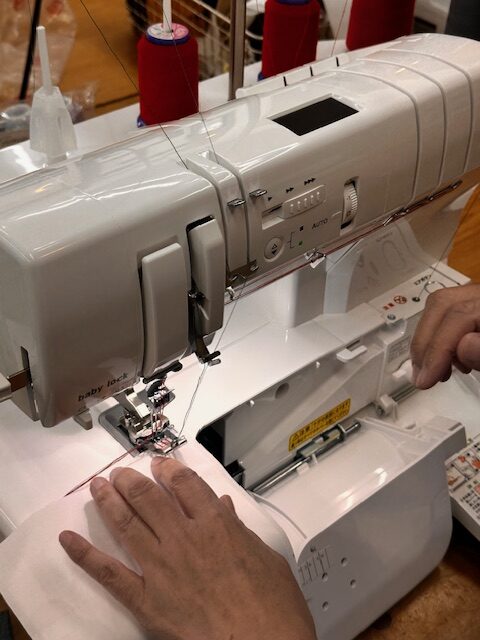 今回のBABYLOCKの”Tsumugi”つむぎは、表面は完全に飾り縫いなので、入れる紐や糸によって表情が変わるという画期的(?)な縫い目になります。