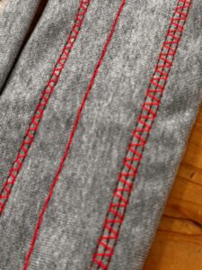 主にスポーツ系衣料に使われており、良く伸びる部分の縫い合わせた所を、ぬい代を折って上からたたくという縫い方に使用されます。
