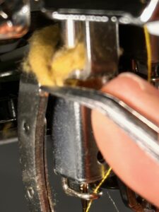 2台あるので、計12本分の針糸のフェルトから、この糸ホコリを剥がしていきます。