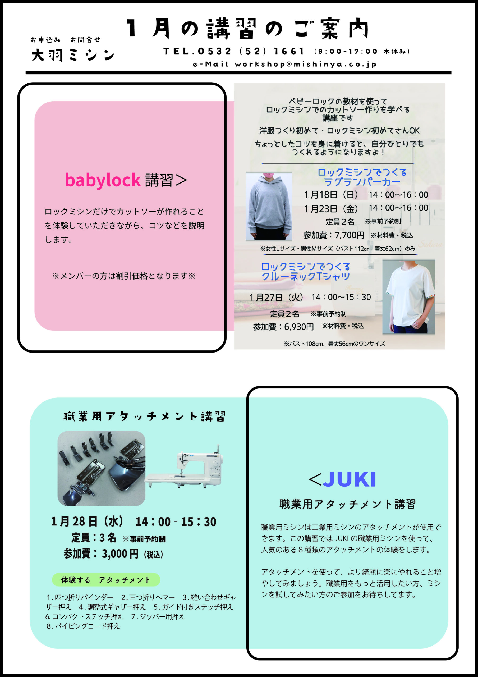職業用ミシンをもっともっと活用したい方、職業用ミシンのご購入を検討されている方にも楽しんでいただける内容です。
