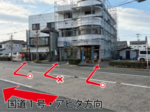 店舗の外装工事に伴い、店舗前の駐車場の使用が制限されています。