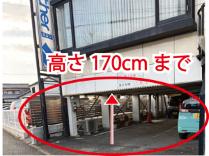 【店舗左側の建物の下の駐車スペース】※車高は170㎝までとなります